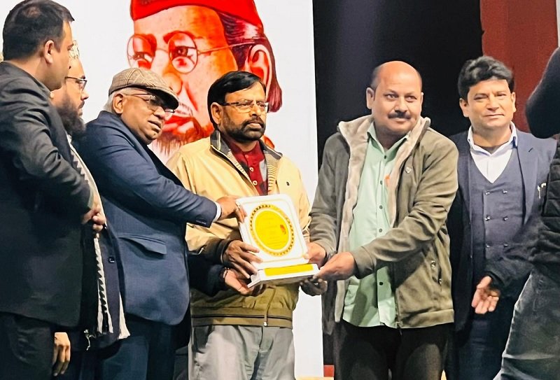 کیپشن: پہلی تصویر میں اسٹیج پر مولانا محب اللہ ندوی, شاہ عالم گڈو جمالی ، پروفیسر ڈاکٹر افسار عالم ، پروفیسر مظہر آصف ، پر وفیسر آصف حسین ،جاوید علی خان ، امانت اللہ خان۔ دوسری تصویر میں پروفیسر مظہر آصف ، پروفیسر ڈاکٹر افسار عالم اور پروفیسر آصف حسین سینٹر صحافی اظہار الحسن کو مولانا محمد علی جوہر ایوارڈ- 2025 دیتے ہوئے