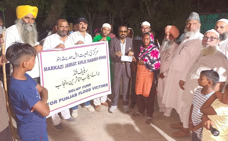 نئی دہلی، 25 ستمبر: مرکزی جمعیت اہل حدیث ہند کے امیر محترم مولانا اصغرعلی امام مہدی سلفی کی قیادت میں ناظم مالیات الحاج وکیل پرویز ، مولانا محمد رئیس فیضی ، صوبائی جمعیت اہل حدیث پنجاب کے ذمہ داران واراکین خصوصا جناب عرفان انجم خازن صوبائی جمعیت اہل حدیث پنجاب، مکرم سیفی،مولانا خبیب ندوی، محمد شاہدوغیرہ پر مشتمل ایک اعلیٰ سطحی راحتی وفد نے مورخہ 23ستمبر 2025ءکو پنجاب کے مختلف سیلاب زدہ مقامات کا دورہ کیا۔ متاثرین سے ملاقاتیں کیں، حالات کا جائزہ لیا اور متاثرین کے درمیان نقد ریلیف تقسیم کی۔یہ جانکاری مرکزی جمعیت اہل حدیث ہند سے جاری ایک پریس ریلیز میں دی گئی۔