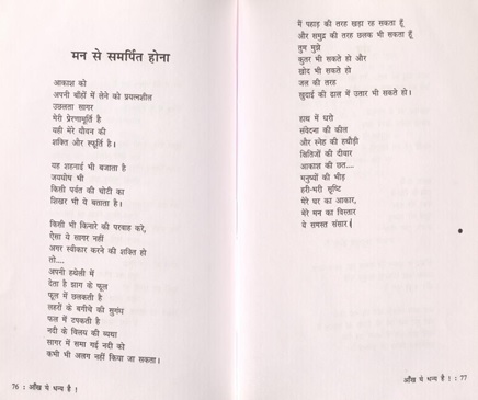 تشریح: مودی اپنی شاعری کو دیوی سے— “ماں” (دیوی ماں) — کے ساتھ ذاتی مکالمہ قرار دیتے ہیں۔ یہاں (روحانی طور پرخود کوپیش کرنے) کی جھلک دکھاتی ہیں، جہاں دیوی رازدار بھی ہے اور ضمیر بھی۔