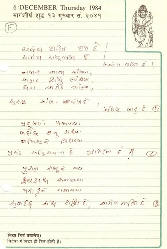 موضوع: اس نظم میں کہا گیا ہے کہ یہ وقت حب الوطنی کا ہے اور ایک ناقابل تسخیر طاقت موجود ہے-جسے کوئی بھی فتح نہیں کر سکتا ۔ اس قدیم ملک میں بے پناہ شجاعت اور بہادری موجود ہے اور سنگھ (سنگٹھن) میں ایک ناقابل شکست ، ناقابل تسخیر قوت پر مبنی بے پناہ طاقت ہے- (ہاتھ سے لکھی ہوئی ڈائری)