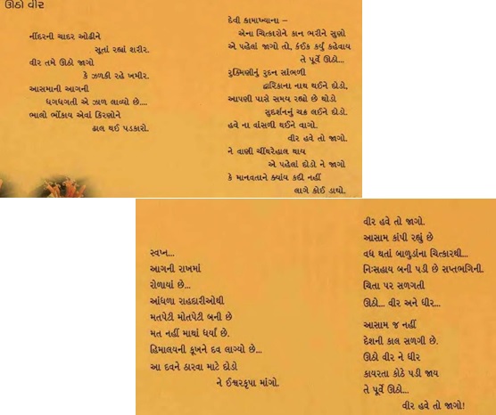 1. (کرگل نظم (1999یہ سب سے پہلے گجراتی اخبارات میں شائع ہوئی ، بعد میں مودی کی تحریروں کے مجموعہ میں اسے شامل کیا گیا۔
